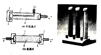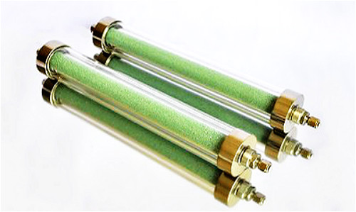 為了保證氣相色譜儀正常工作,一般使用的載氣純度99.99%(電子捕獲檢測器必須使用高純氣源,即99.999%以上)。同時,所有氣體還須經(jīng)過凈化管進行凈化處理,以除去水分和雜質(zhì)。凈化管通常為內(nèi)徑50mm,長200~250mm的金屬或PVC管,如圖所示。