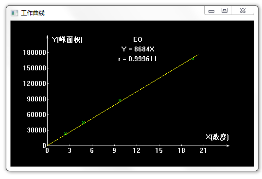 將儀器打開等待所有條件準(zhǔn)備就緒后,將上述配好的標(biāo)準(zhǔn)溶液依次按同樣的間隔時間放入頂空進(jìn)樣器加熱15min后進(jìn)樣收集數(shù)據(jù)制作標(biāo)準(zhǔn)曲線,計(jì)算出峰面積和濃度的線性方程。