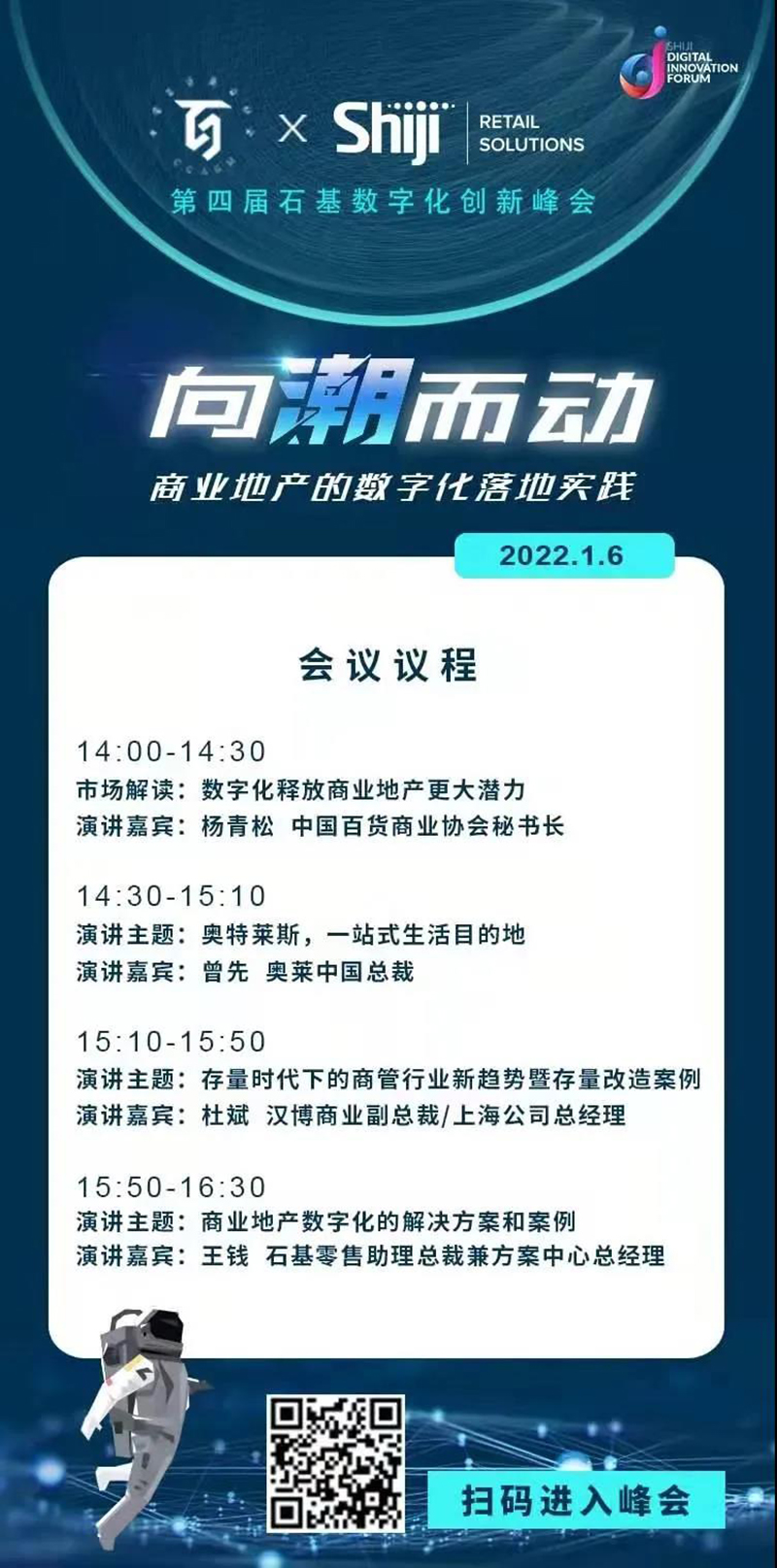 2022年1月6日,由中國百貨商業(yè)協(xié)會和石基零售共同主辦的 “商業(yè)地產(chǎn)數(shù)字化落地實踐”線上研討會正式召開,奧特萊斯(中國)有限公司總裁受邀參加,并進行了有關(guān)《奧特萊斯,一站式生活目的地》的主題演講。