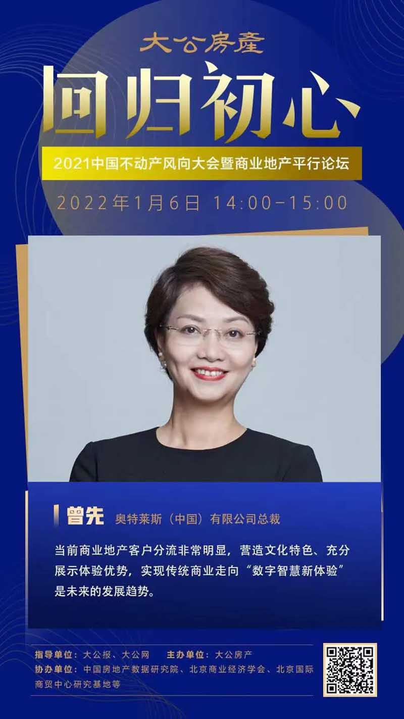 2022年1月6日,由大公網(wǎng)房產(chǎn)頻道聯(lián)合多方機(jī)構(gòu)舉辦的“【回歸初心】——2021中國不動(dòng)產(chǎn)風(fēng)向大會(huì)暨商業(yè)地產(chǎn)平行論壇”線上直播活動(dòng)正式開始。本期論壇以“回歸初心”為主題,邀請(qǐng)了行業(yè)內(nèi)知名專家、商業(yè)地產(chǎn)企業(yè)領(lǐng)袖等,圍繞行業(yè)周期下的危與機(jī)、新時(shí)代下商業(yè)地產(chǎn)的運(yùn)營管理手段、新周期下如何堅(jiān)守商業(yè)初心等話題展開討論,解析行業(yè)機(jī)遇挑戰(zhàn)及復(fù)蘇破局之道。奧特萊斯(中國)有限公司總裁受邀參加本次活動(dòng),并進(jìn)行了精彩的線上直播發(fā)言。