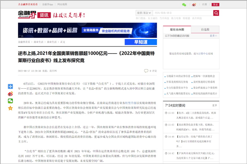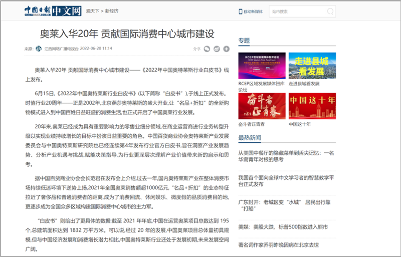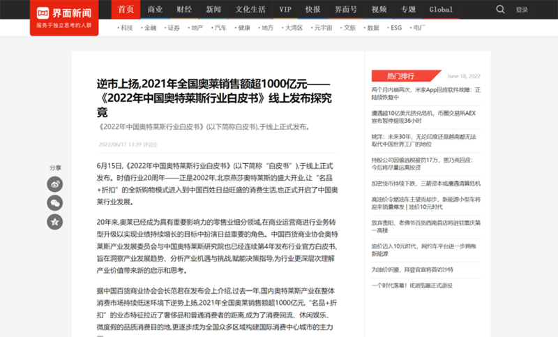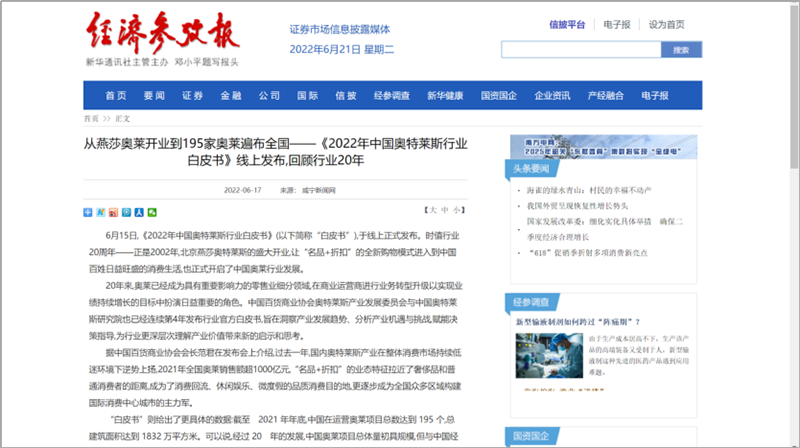 國(guó)內(nèi)媒體爭(zhēng)相報(bào)道,中國(guó)奧萊市場(chǎng)緣何逆勢(shì)上揚(yáng),2021年銷(xiāo)售額超1000億元