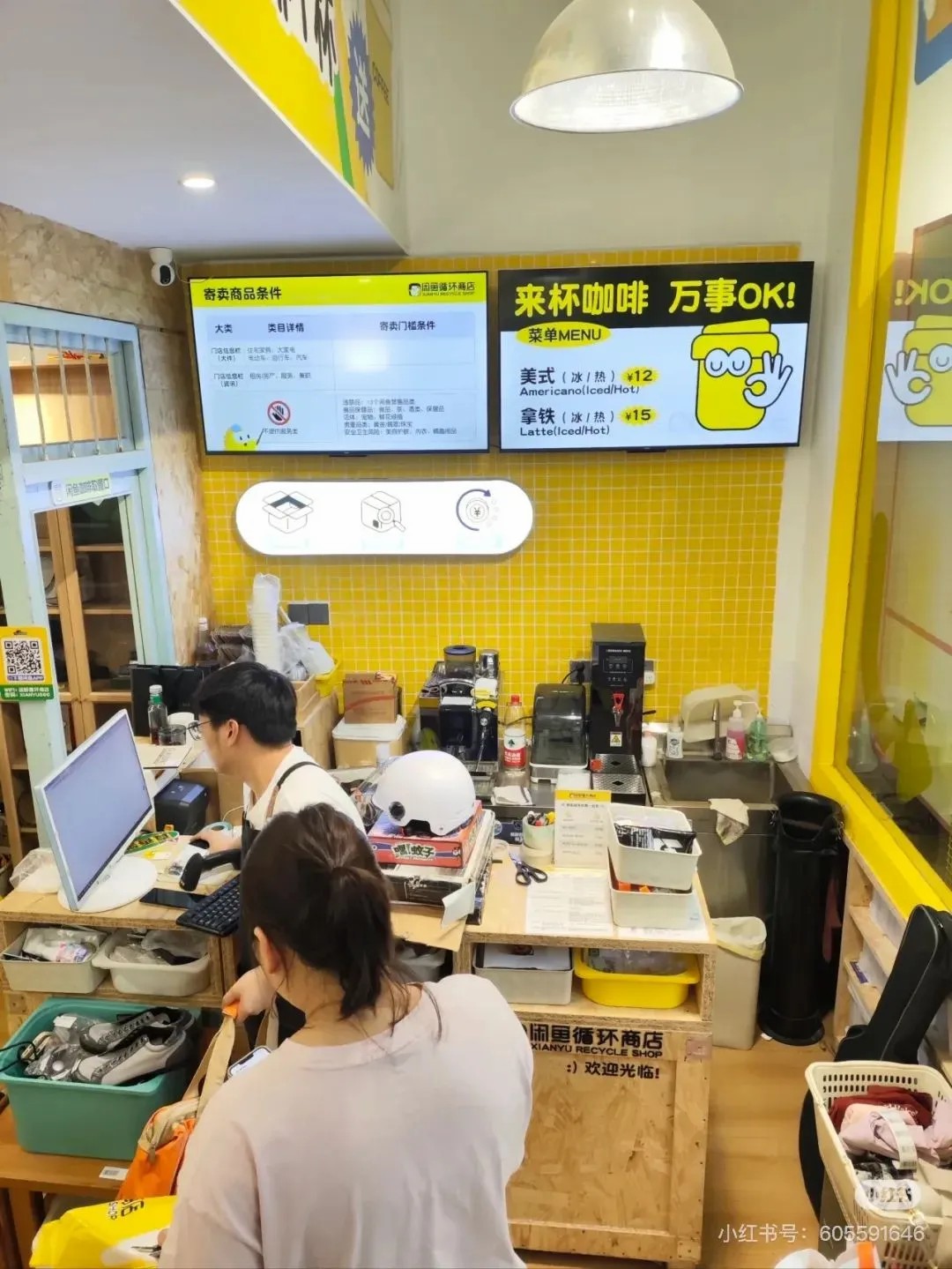 香港慢生活環(huán)保店Slowood,在保證質(zhì)量的前提下,店內(nèi)的所有商品去除一切包裝,或部分產(chǎn)品只采用環(huán)保的可降解材料,沒(méi)有任何塑料和紙張的浪費(fèi);位于杭州絲聯(lián)166文創(chuàng)園的閑魚循環(huán)商店,門店以閑魚APP標(biāo)志性的黃色為主色調(diào),門頭上標(biāo)注了“寄賣/二手/咖啡”字樣,門店屬性十分突出,門口還擺放了露營(yíng)椅供顧客休息。