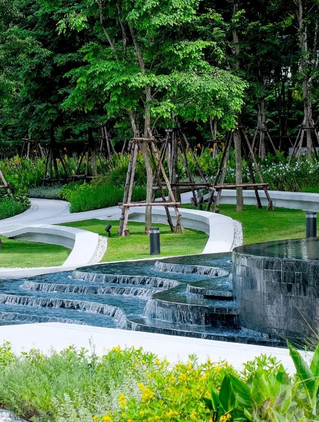 毫無疑問,可持續(xù)和綠色生活是當(dāng)下城市居民最為渴求的一種生活狀態(tài)。依托來自于區(qū)位的先天優(yōu)勢,項目東西兩側(cè)毗鄰LUMPHINI公園和Benjakitti公園,加之自身打造了超過50萊的綠色開放空間(泰國常用面積測度單位,合計約8萬平方米),全部綠地連接起來形成一個占地超過700萊(合計超過百萬平方米)的巨大“綠洲”。One Bangkok所在區(qū)域可以說是曼谷重要的“綠肺”。
