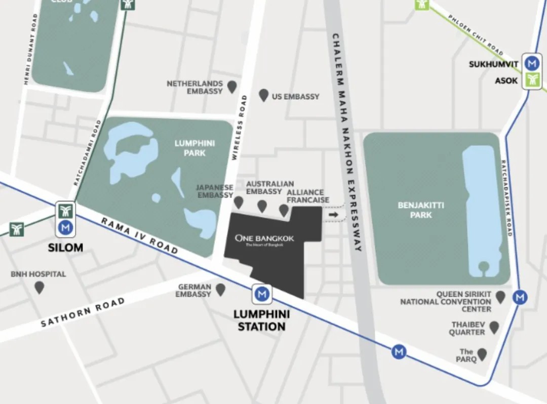 Wireless Road 和 Rama IV 路的拐角處,是曼谷市中心熱點(diǎn)區(qū)域的最后一塊土地,將Sathorn、Silom 和 Samyan等主要商圈連通起來,緊靠地鐵LUMPHINI站與輕軌 Ploenchit 站(在該站設(shè)有免費(fèi)穿梭巴士),可完美融入周邊相對成熟的公共交通系統(tǒng)中。