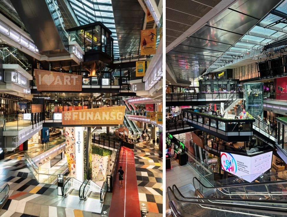 ◎前身是數(shù)碼商城的新加坡FUNAN,以錯(cuò)落的樓梯,突破了傳統(tǒng)商業(yè)體乏味的水平動(dòng)線,增添空間的趣味性,還切割出了大量公共區(qū)域,設(shè)置200米橫穿室內(nèi)的自行車道,打造成為新加坡首個(gè)騎行友好商場(chǎng)。