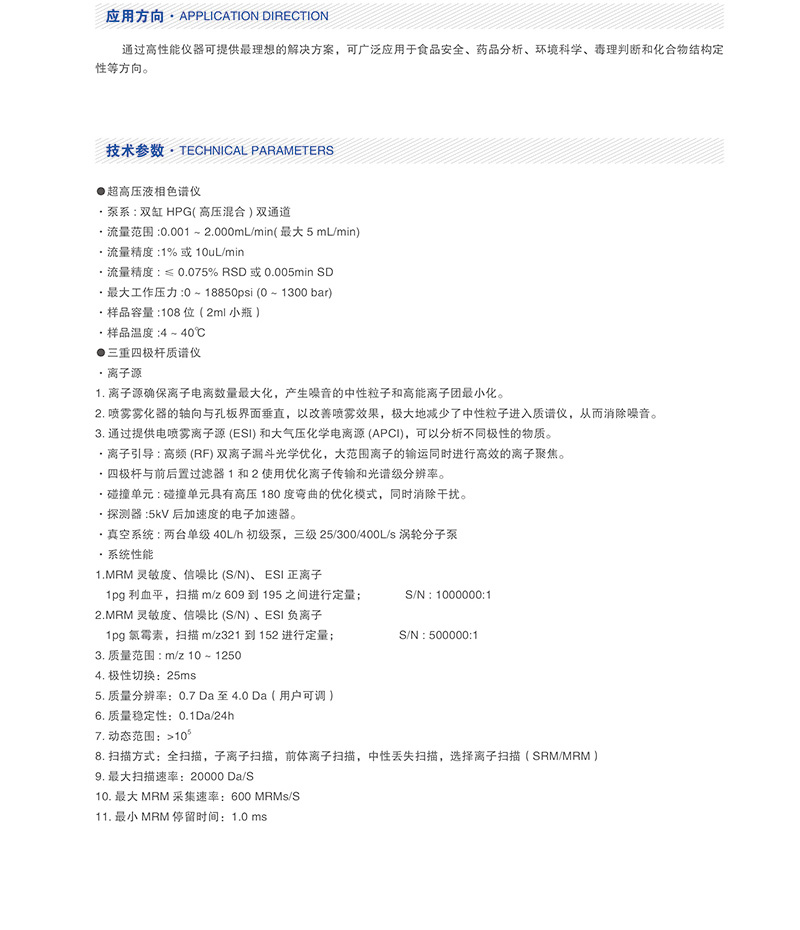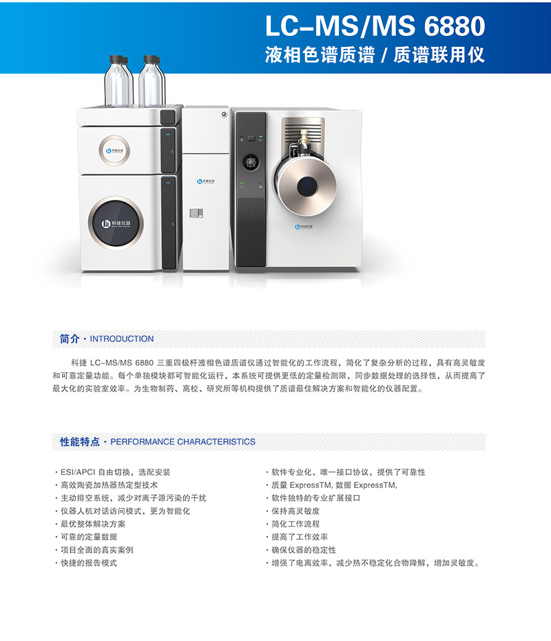LC/MS-TQ 6880三重四極桿液相色譜質譜儀 來源:科捷 發(fā)布時間:2020-08-05 10:29 人氣:8163 產品型號:LC/MS-TQ 6880 應用領域:通過高性能儀器可提供最理想的解決方案,可廣泛應用于食品、藥品安全、環(huán)境分析,毒理判斷和化學物質結構定性等方向 立即咨詢立即留言